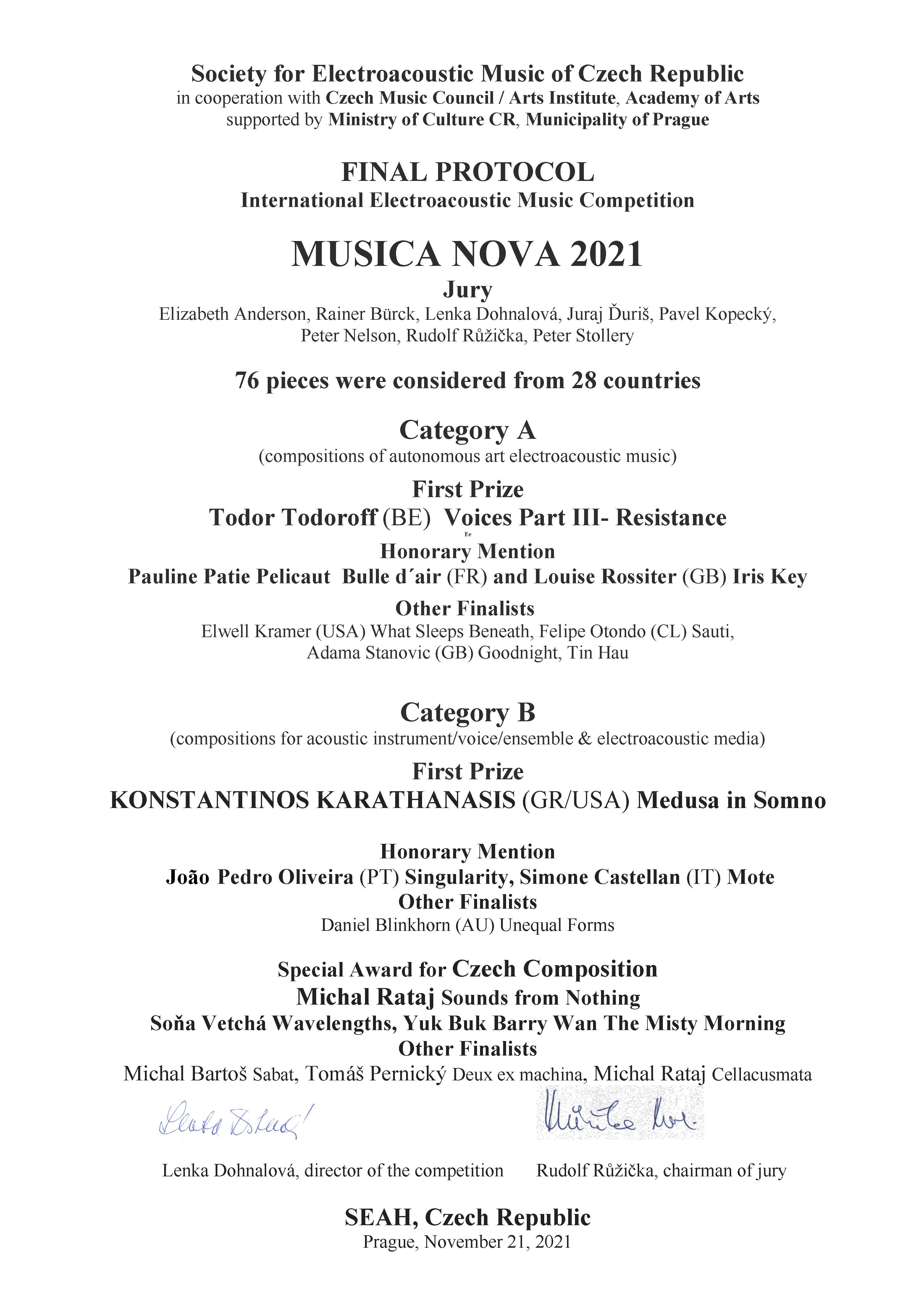 I am delighted that The Iris Key has been awarded an Honorary Mention in the 2021 Edition of the Musica Nova Composition Contest.